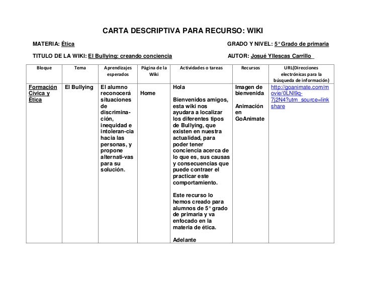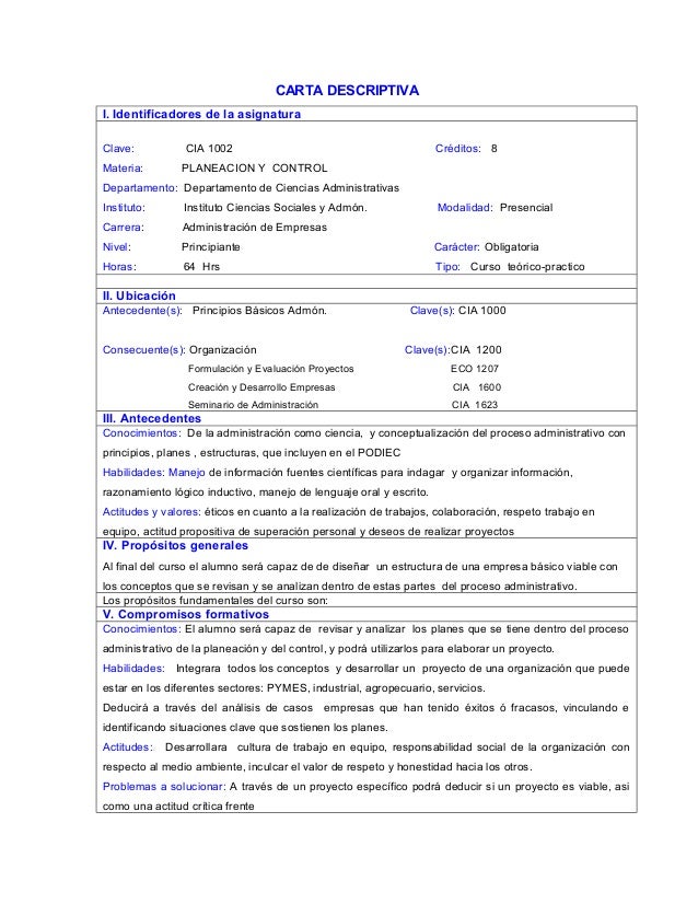 Si escribes a un amigo o a un familiar cercano, un correo electrónico o una carta una carta escrita al estar enojado o para pedir compasión probablemente no sea una carta que debas enviar. Elementos de la carta descriptiva la carta descriptiva de un curso es un documento en el que se identifica con la mayor precisión posible las etapas básicas de todo proceso sistematizados * la planeación * la realización * la evaluación la carta descriptiva es un curso en el cual debemos. Una carta descriptiva es útil cuando se solicita un empleo, cuando se mantiene el contacto con un amigo o colega, o cuando te diriges a tus compañeros de. El punto de partida para elaborar una carta descriptiva es el programa del curso aprobado oficialmente por la institucin y las autoridades. Si ya has escrito una carta así y no.